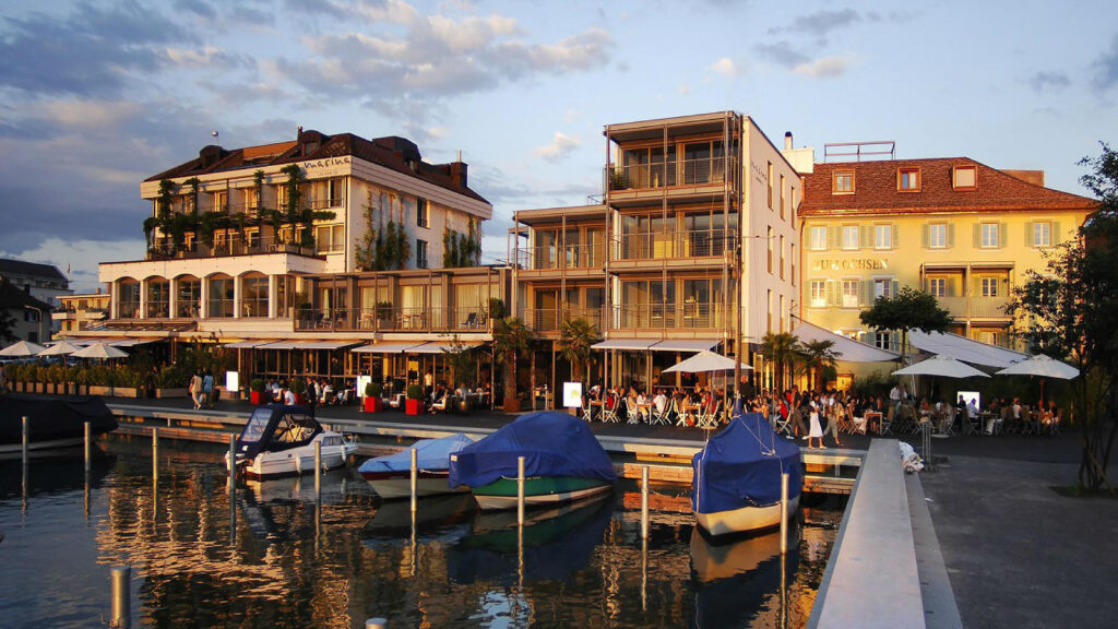 Lachen verzaubert. Die Sonnenuntergänge des Hauptorts des schwyzerischen Bezirks March sind ebenso legendär wie die Flaniermeile an der Hafenpromenade. Die besondere Lage an der herrlich besonnten Bucht am südlichen Ufer des oberen Zürichsees bildet den Boden für Lebensqualität auf höchstem Niveau.